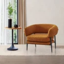 Vibrant yet poised, this brown arm chair offers a bold expression of contemporary