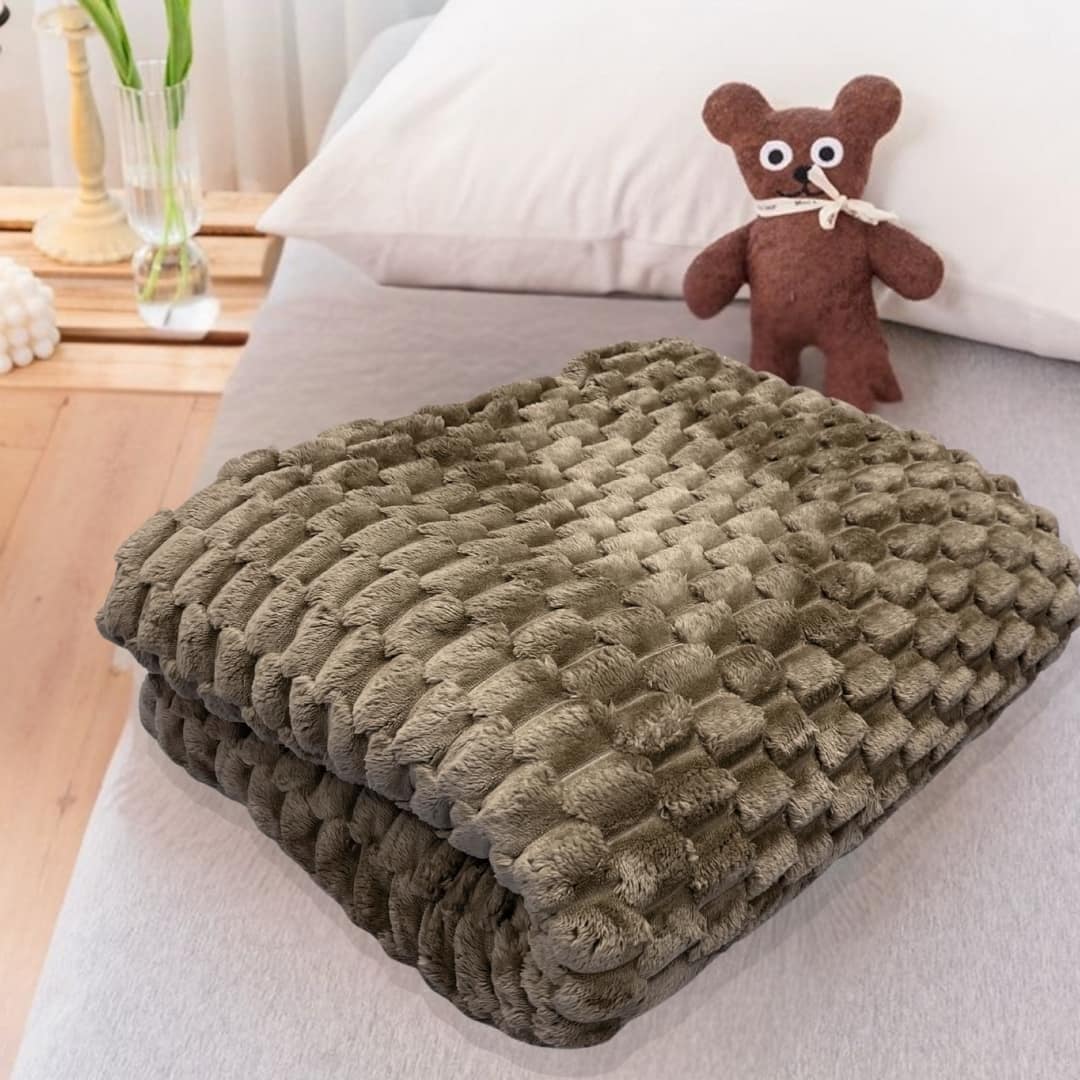 ? 100% premium microfiber polyester. ? Super soft. ? Fluffy. ? Anti-pilling. ? Comfy. ? Light weight. ? Machine washable. ? Color: Light brown.