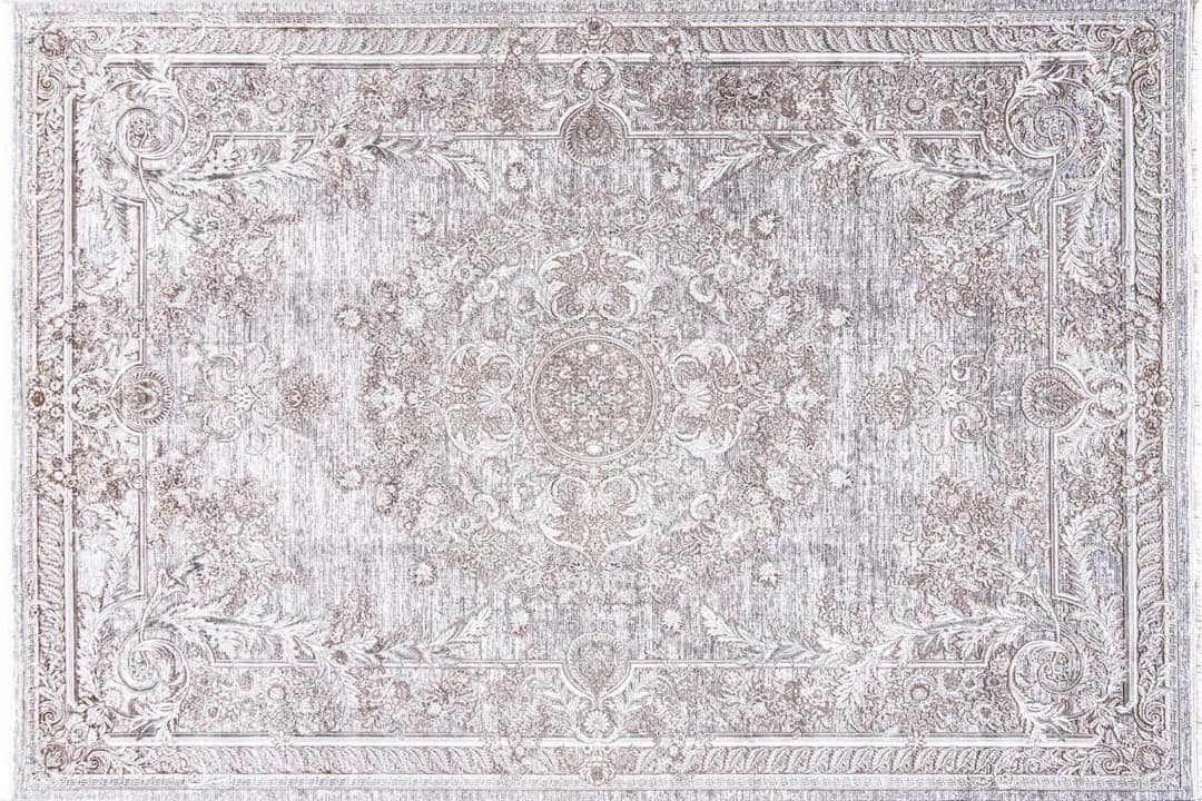 This rug combines classic elegance with a modern twist, featuring a beautifully detailed vintage pattern in soft gray and ivory tones. The intricate floral motifs and ornate borders create a sense of timeless luxury, while the subtle distressed effect across the surface introduces a contemporary edge. The central medallion design draws the eye and offers a focal point that exudes sophistication and charm. This rug is perfect for traditional or transitional interiors as it adds both warmth and refinement to any space.