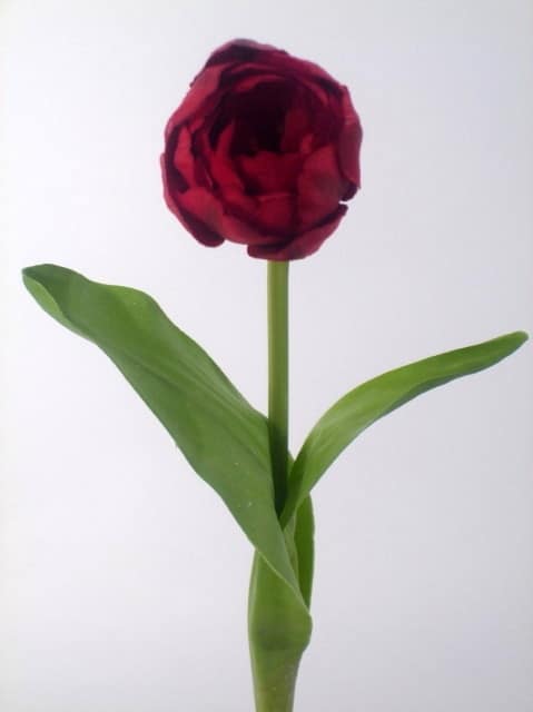 This stunning single tulip, with its rich burgundy petals and long, vibrant green stem, is ideal for a clean, modern look. It works beautifully on console tables or as part of a minimalist centerpiece.