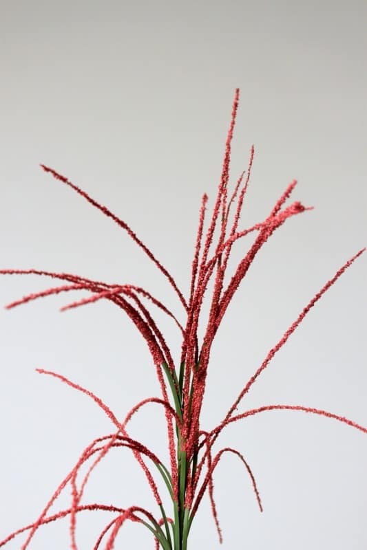 This decorative branch features vivid red linear elements extending outward, resembling delicate grass-like tendrils. This serves as a striking piece for contemporary interiors, adding vibrancy and a natural touch to vases, centerpieces, or floral arrangements