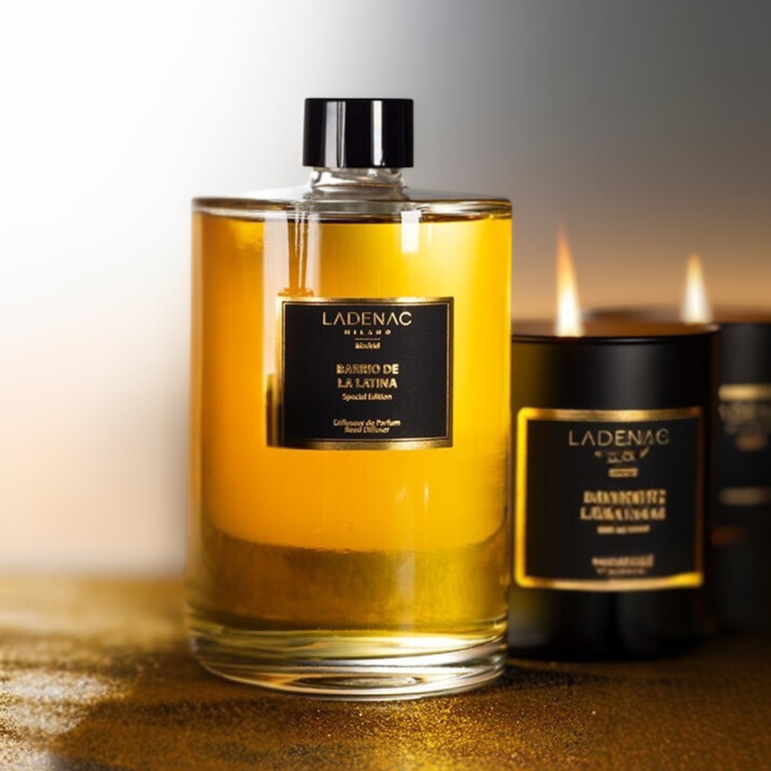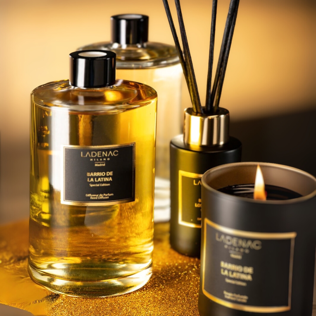 Replacement for all Los Barrios de Madrid fragrances. 500ml perfume glass bottle, includes black rattan rods.