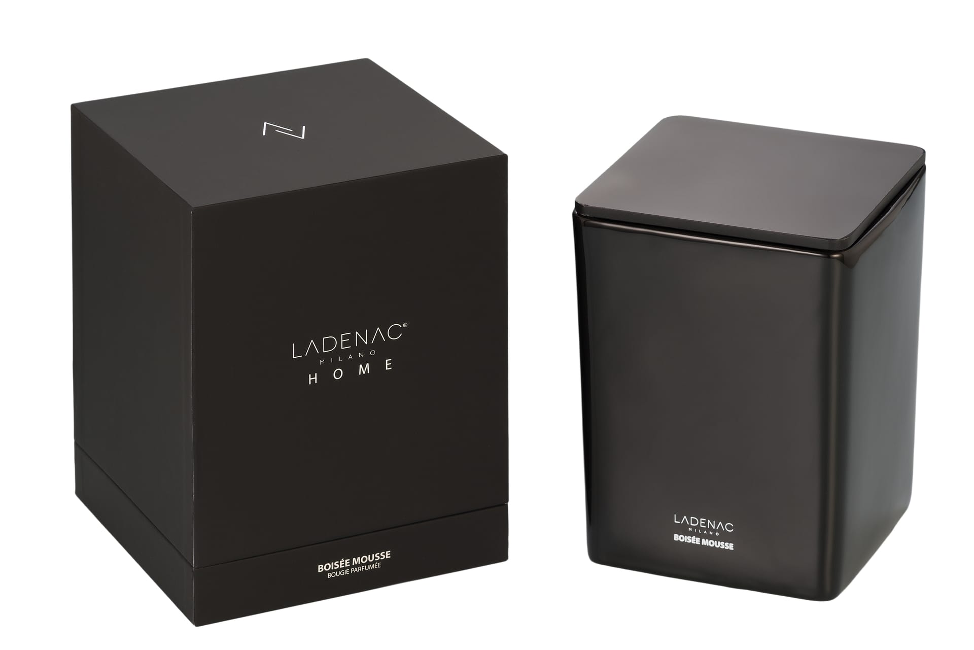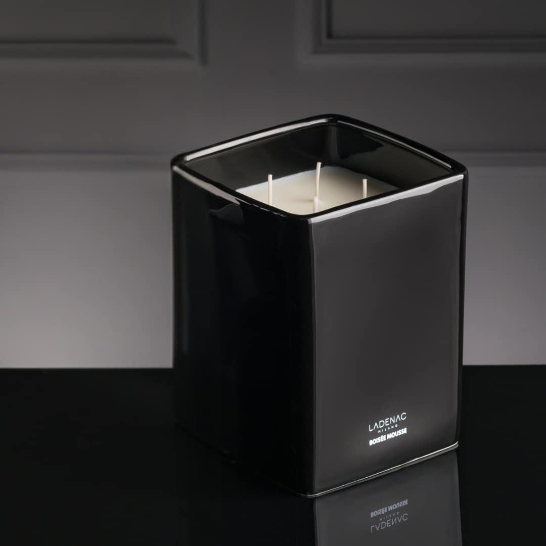 A luxury scented candle in a limited edition ceramic container with a lacquered wooden lid. Presented in a deluxe hard case. Only available in Ladenac’s corporate perfume, Boisée Mousse.