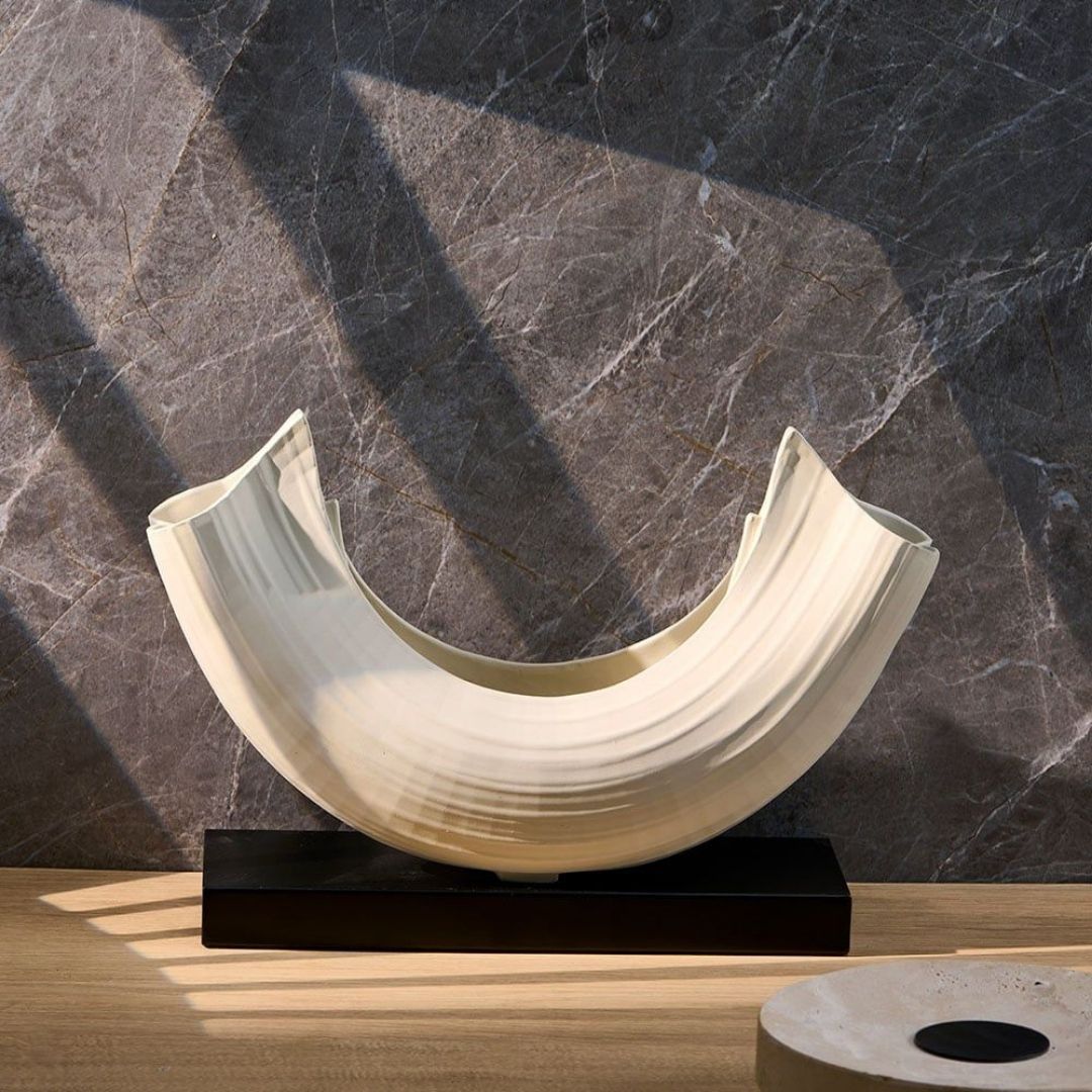 Minimalist and intriguing, this sculpture draws inspiration from lunar transitions, lending depth and sophistication to any space.