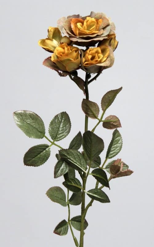 The warm mustard hue of these roses blends beautifully with their darker green leaves, creating a calm yet captivating bouquet. The roses feature velvety petals in a spiral pattern, gradually fading to a lighter tone towards the edges. This gentle gradient of color gives the flowers a soft and romantic feel, perfect for intimate settings.