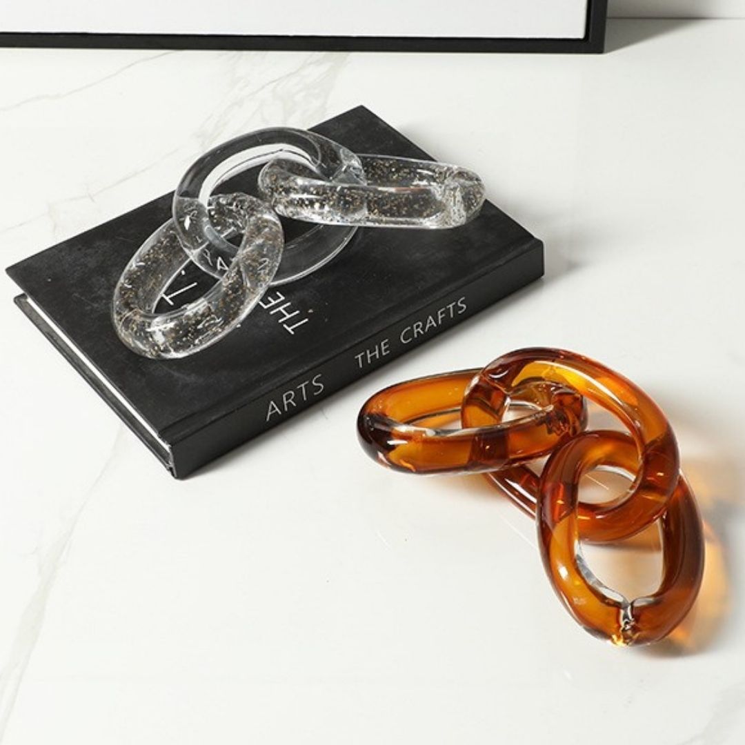 A contemporary sculpture inspired by interlocking rings symbolizing unity and motion. Its smooth curves and refined finish add a touch of modern artistry to any interior.