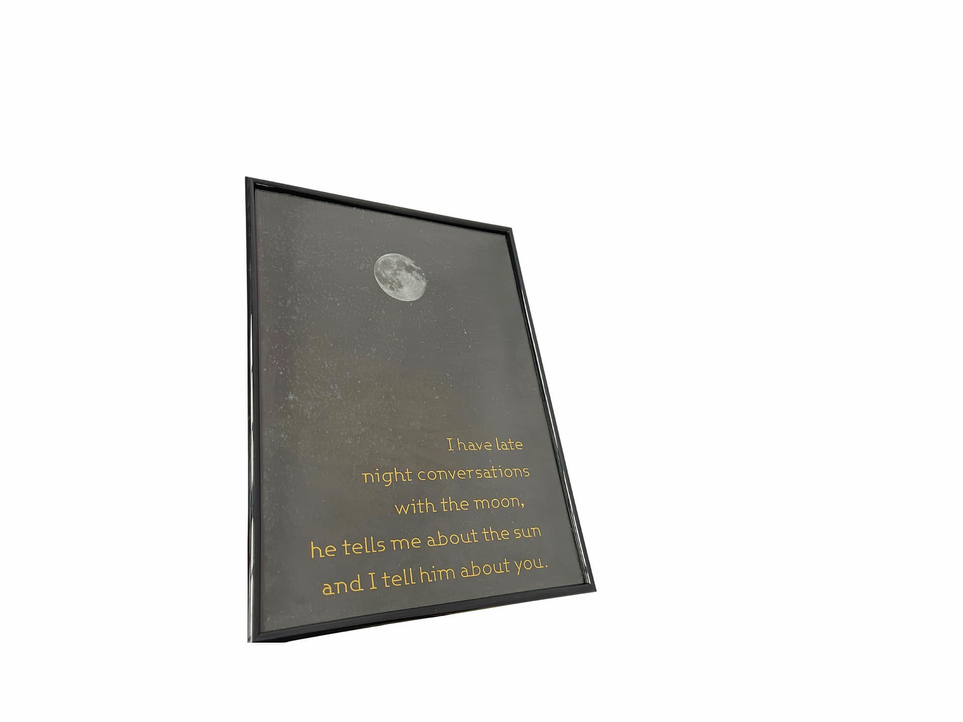 A beautifully illustrated moon at the top complements the message, which creates a dreamy and intimate atmosphere. This piece is perfect for a bedroom or cozy corner and invites reflection and evoking deep emotions.