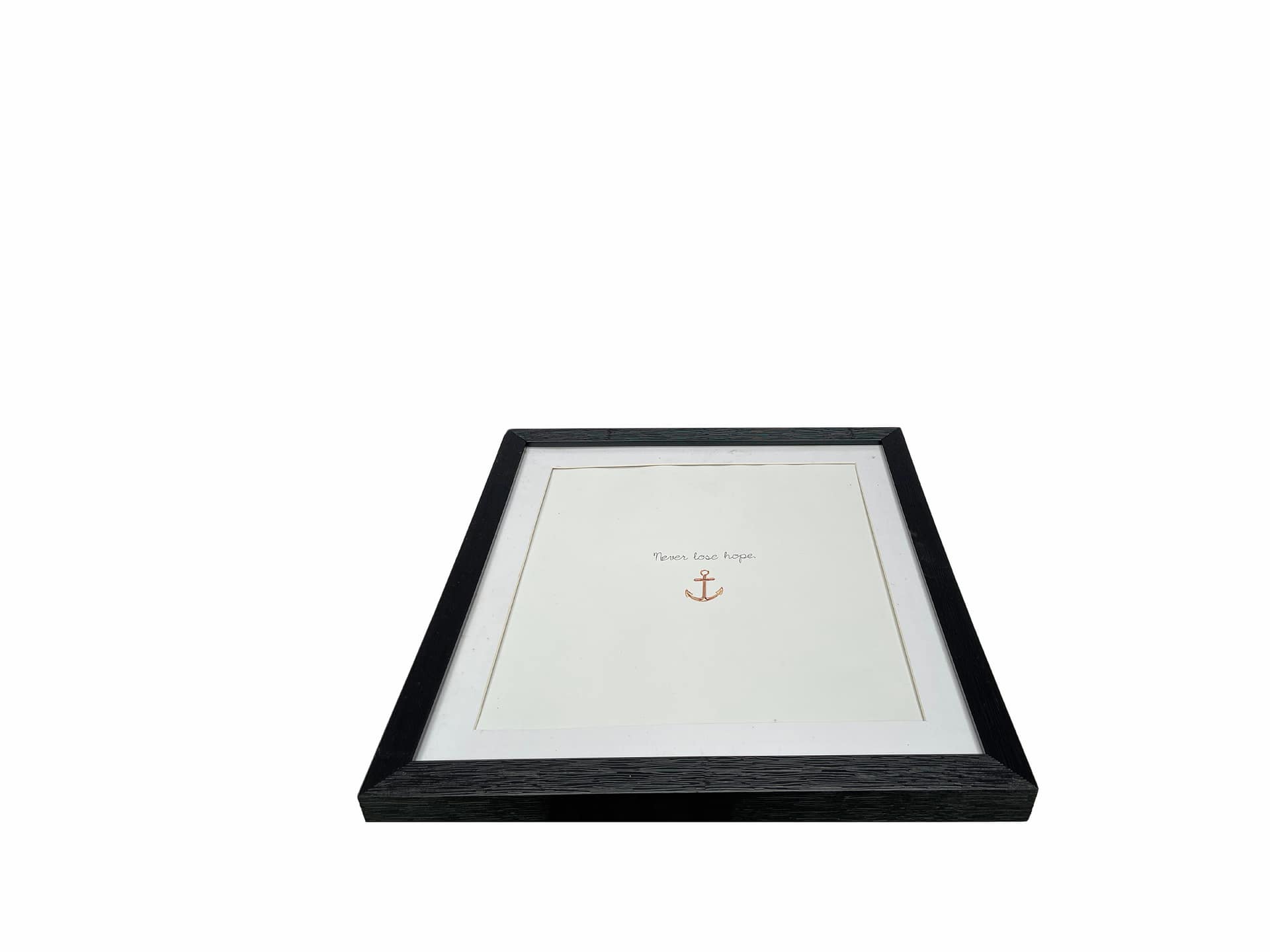 This piece is minimalistic with a black frame, and it features the message “Never lose hope” paired with a small anchor symbol beneath it. The simplicity and clean design of the art make it a great motivational piece, which symbolizes stability and perseverance, making it perfect for inspiring positivity in any space.