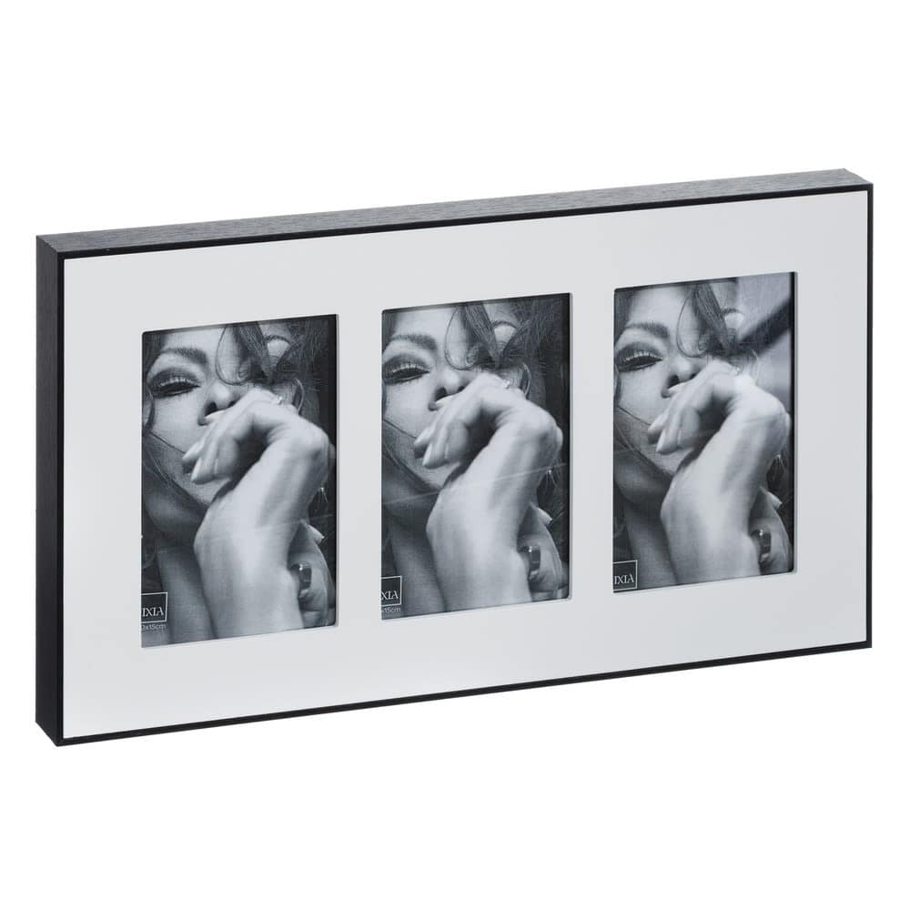 This frame features a modern, multi-photo design and showcases three separate picture slots in a sleek, rectangular layout. The frame has a minimalistic black finish with a subtle white border, highlighting the photographs it holds. The simplicity of the design is perfect for displaying a series of photos, whether family portraits, special moments, or thematic images. The elegant lines and neutral color scheme make this frame versatile and suitable for various modern home interiors, adding a touch of sophistication and order to your wall displays.
