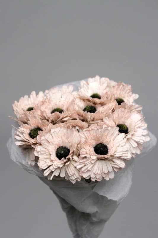 These rich flowers are packed tightly in a bouquet, with each flower bursting with layers of petals. The contrast between the soft pink petals and the green centers brings a touch of elegance and depth. Their compact size and rich color make them perfect for adding a cozy, inviting atmosphere to any setting.
