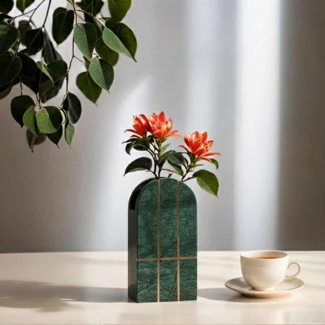 Green Marble vase Natural marble Copper