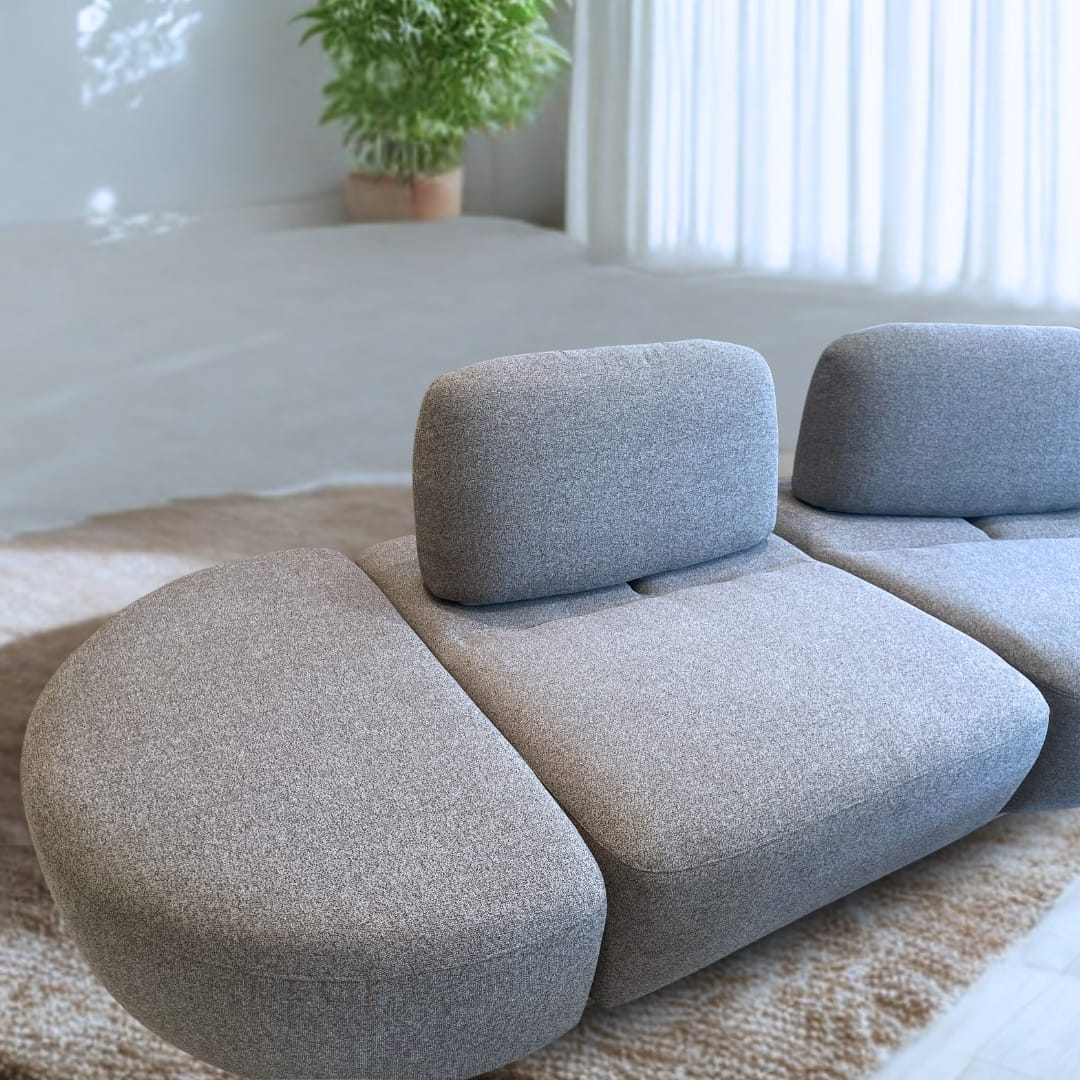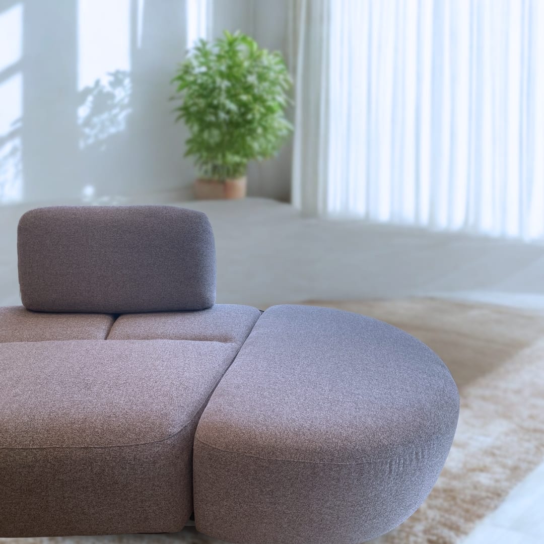? Components: Right and left ottoman piece, 2 point modules, armless module. ? Semi-auto adjustable headrests. ? Texture: Otter ? Curved sofa