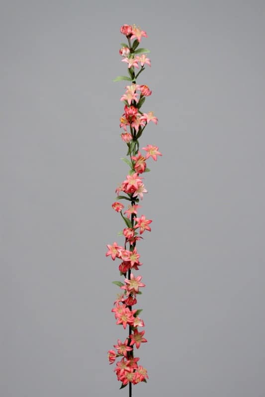 This tall floral arrangement featuring pink and orange blossoms that stretch upwards, capture a sense of movement and grace. The flowers are delicately arranged along the slender stems, and the soft, fading hues between the blossoms create a natural gradient, adding depth and beauty to this lovely floral display.