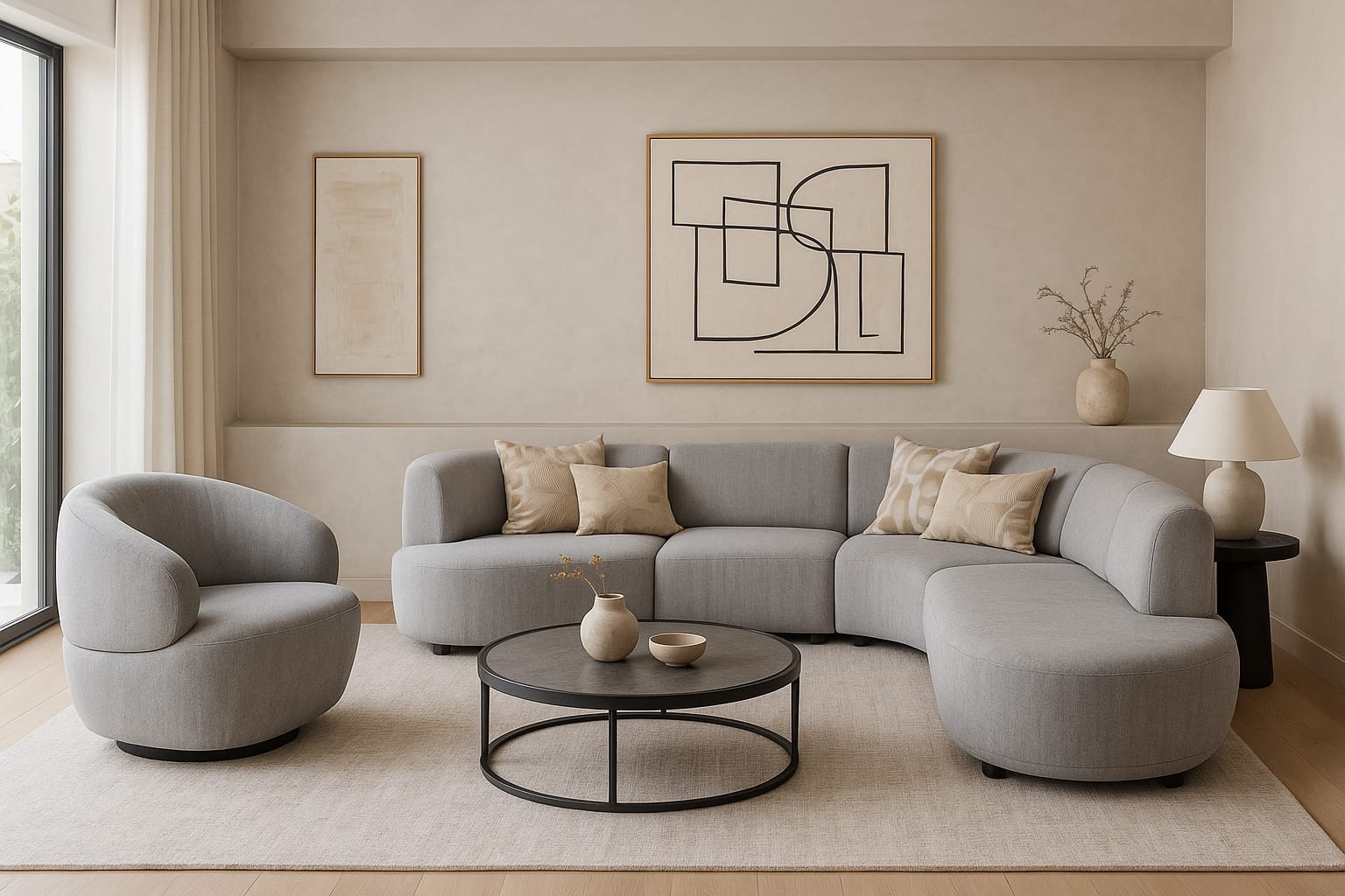 This contemporary sofa set is a harmonious blend of comfort and sophistication,