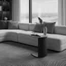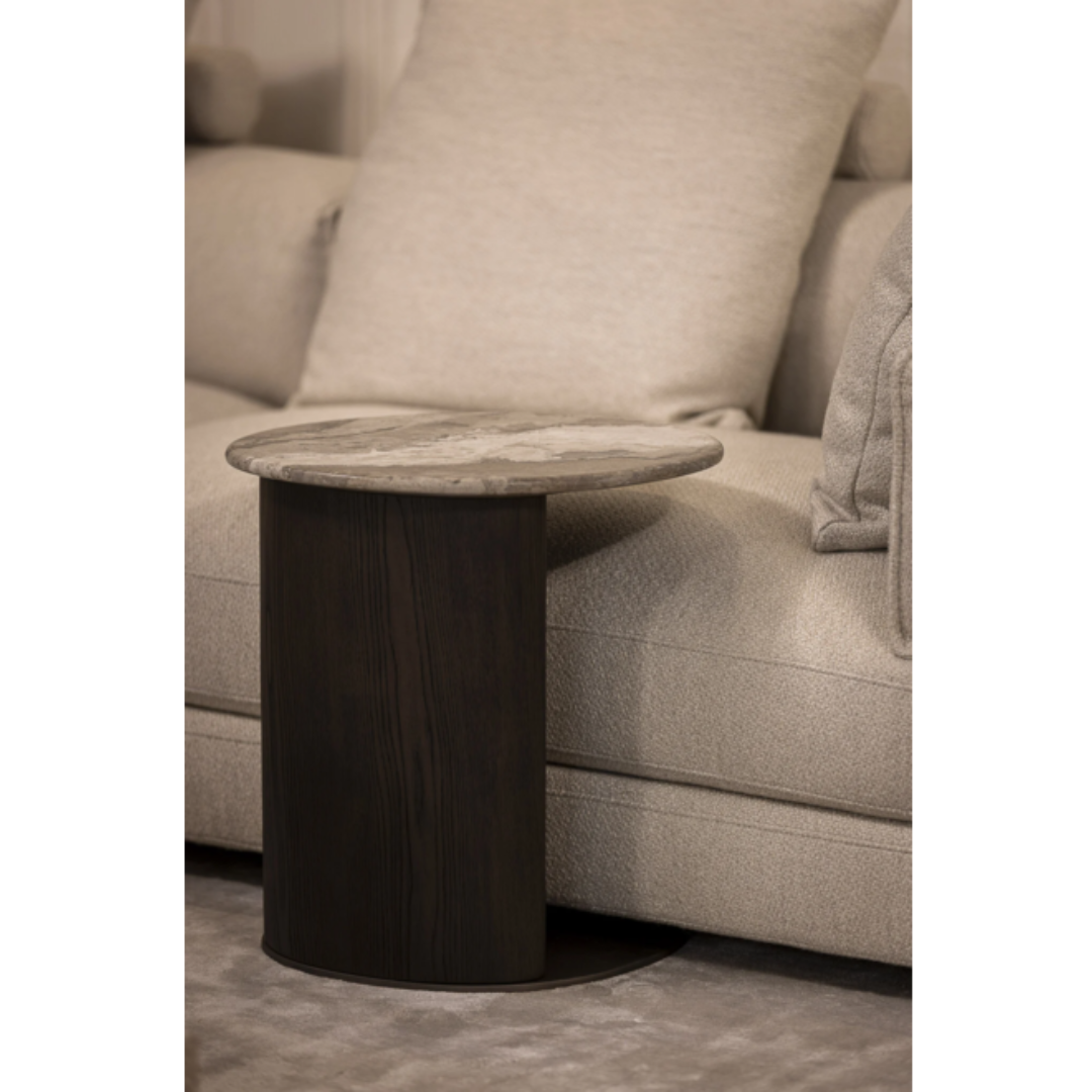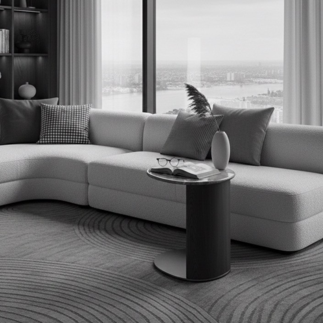 The Terra Side Table is a modern sculpture in functional form. Its compact round marble top rests lightly on an offset cylindrical base, creating a gentle architectural imbalance that feels both artistic and organic.