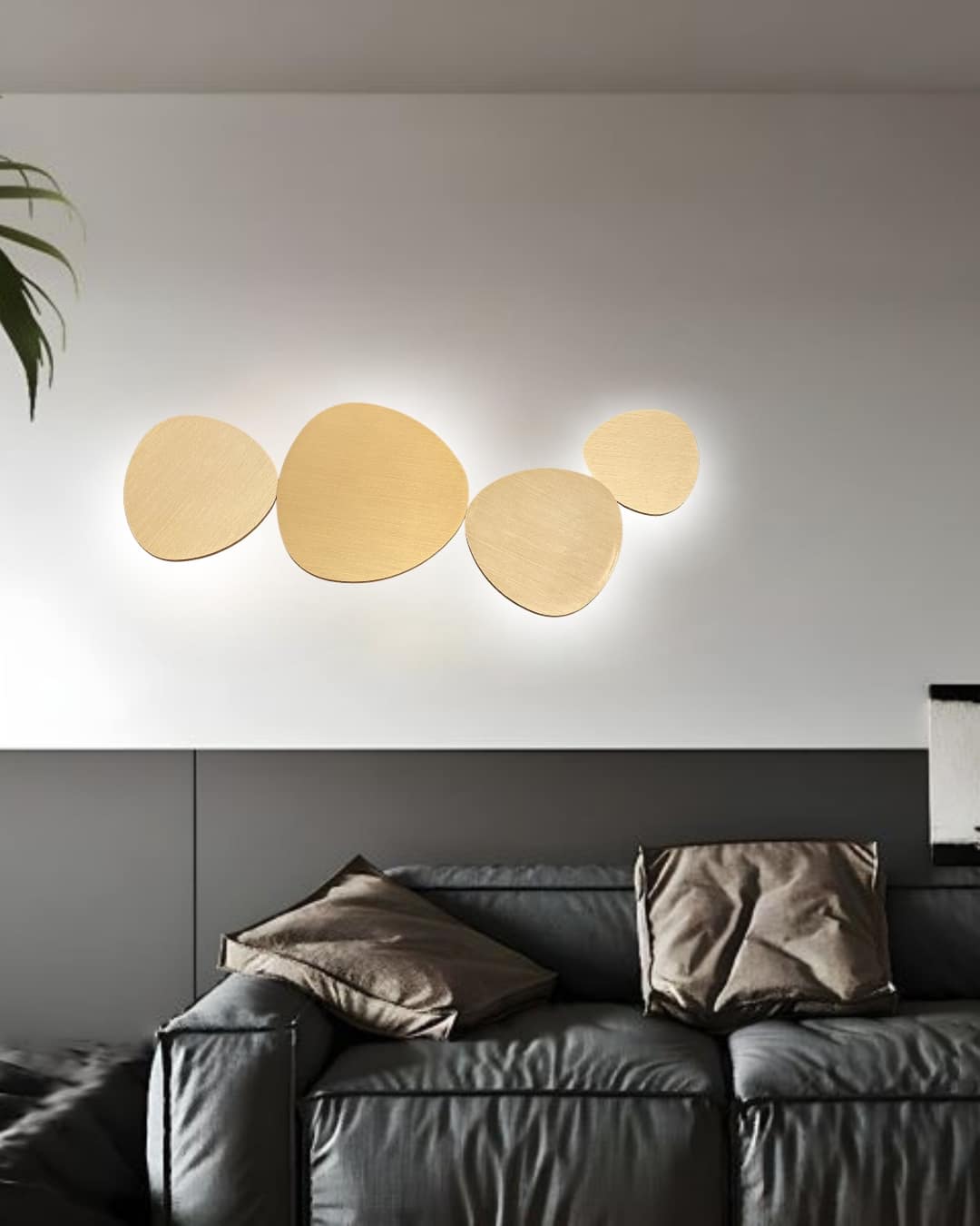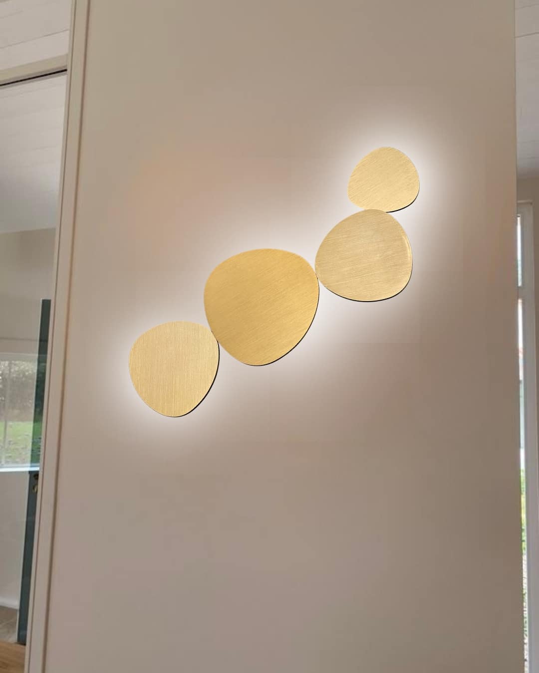 Inspired by the organic shapes of river stones, this ceiling light installation features overlapping matte black ovals that emit a warm backlit glow. The sculptural composition creates a dramatic focal point for any ceiling. It is ideal for entryways or modern lounges.