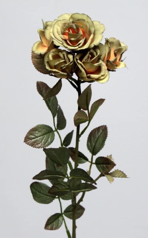 The soft yellow hue of these roses blends beautifully with their darker green leaves, creating a calm yet captivating bouquet. The roses feature velvety petals in a spiral pattern, gradually fading to a lighter tone towards the edges. This gentle gradient of color gives the flowers a soft and romantic feel, perfect for intimate settings.